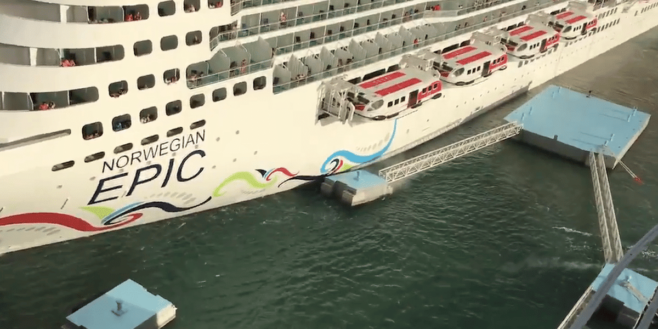Le paquebot de croisière Norwegian Epic était en partance de Floride pour se rendre aux Caraïbes. De passage à Porto Rico, le navire prêt à amarrer, a percuté le quai et l’a partiellement démoli.