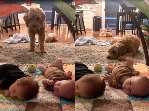 Sur cette vidéo, on voit un chien qui demande à deux petits bébés de jouer avec lui. Malheureusement, ces derniers étaient trop petits pour répondre au chien.