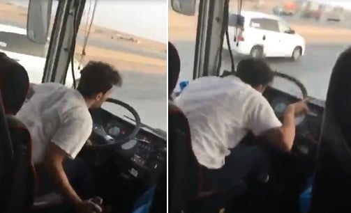 Cet homme a une attitude bizarre alors qu’il est en train de conduire un bus. Ce qui n’est pas du tout rassurant.