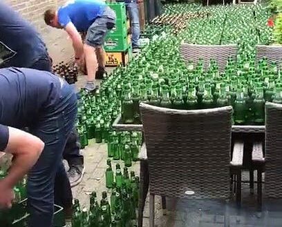 Un marié absent et les amis en profitent pour déposer dune quantité astronomique de bières vides dans son jardin, mais aussi partout dans sa maison. Des centaines de canettes de bières sont apportées du camion pour remplir cet appartement…