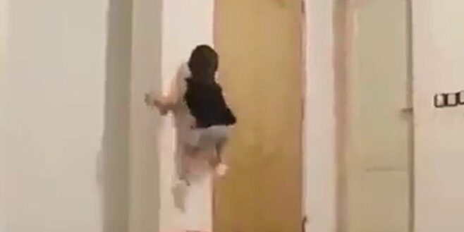 Le petit garçon de cette vidéo arrive à atteindre le plafond en escaladant le pilier de la maison