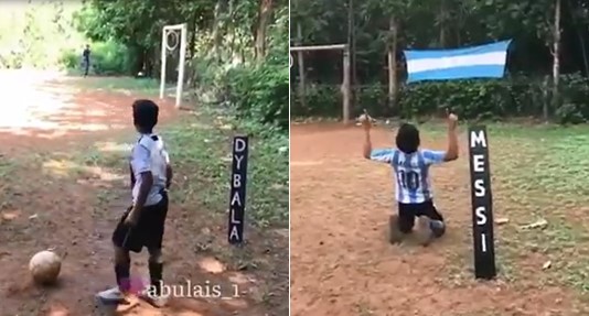 Ce jeune footballeur imite les grandes stars de foot en marquant des buts incroyables et en les célébrant comme eux.