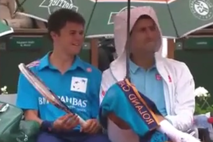 Pendant le tournoi de Roland Garros, le match a été interrompu à cause d’une averse. Novak Djokovic a alors eu l’idée d’inviter le ramasseur de balles à venir s’asseoir à ses côtés.