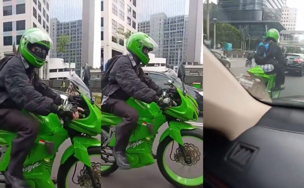 Ce motard a décidé de conduire sa grande moto Kawasaki en mode vélo. Cette dernière est clairement tombé en panne d’essence.