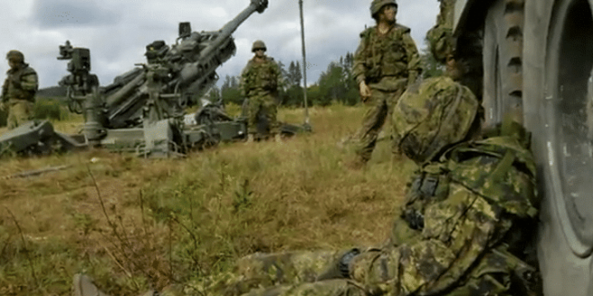 Alors qu’il se trouve dans une position pas très confortable, ce soldat canadien s’est complètement assoupi. Ereinté par les entraînements nocturnes ou juste un gros dormeur ? Difficile de deviner. Toutefois, il se fait rapidement remarquer par ses compagnons qui se trouvent être très près d’un canon d’artillerie.