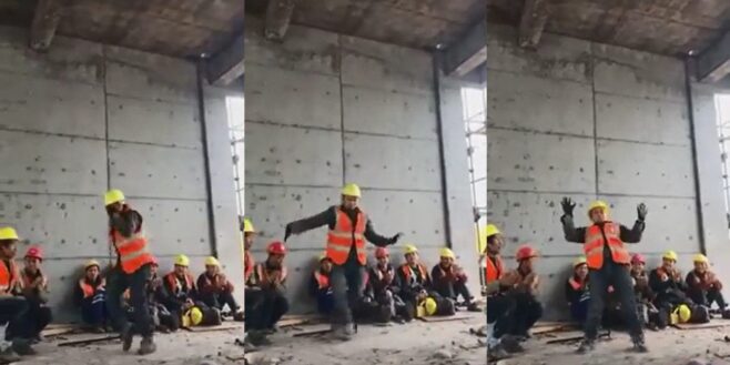Pendant qu’ils prenaient leur pause de travail, un des constructeurs s’est levé pour montrer à ses collègues son incroyable talent.