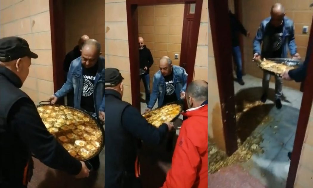 Ces deux hommes ont si faim qu’ils ne peuvent plus réfléchir clairement ! On peut voir dans la vidéo comment ils essayent de faire passer un énorme plateau rond depuis une porte rectangulaire.