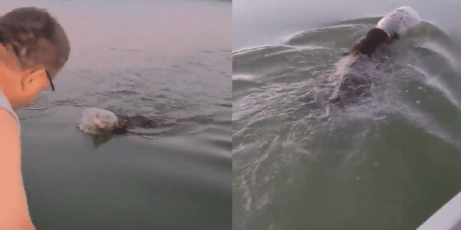 Tout le monde se souvient de ce petit ourson glouton, qui est toujours à la recherche de son miel et qui parfois a la tête coincée dans le pot pour récupérer la dernière goutte. Vous direz sûrement qu’il n’existe que dans les dessins animés. Cependant, ces personnes à bord de leur bateau à moteur se sont lancées dans une aventure un peu bizarre.