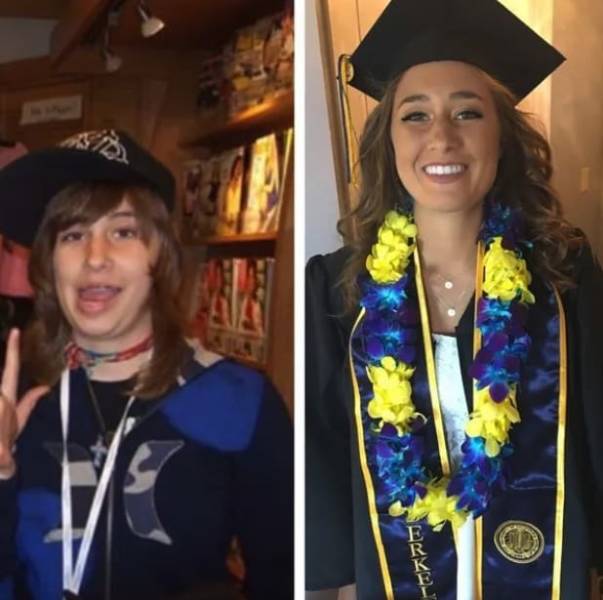 « Quand j’avais 14 ans avec de mauvaises dents et de mauvais reflets VS quand j’avais 22 ans avec de meilleures dents et de meilleurs reflets. »