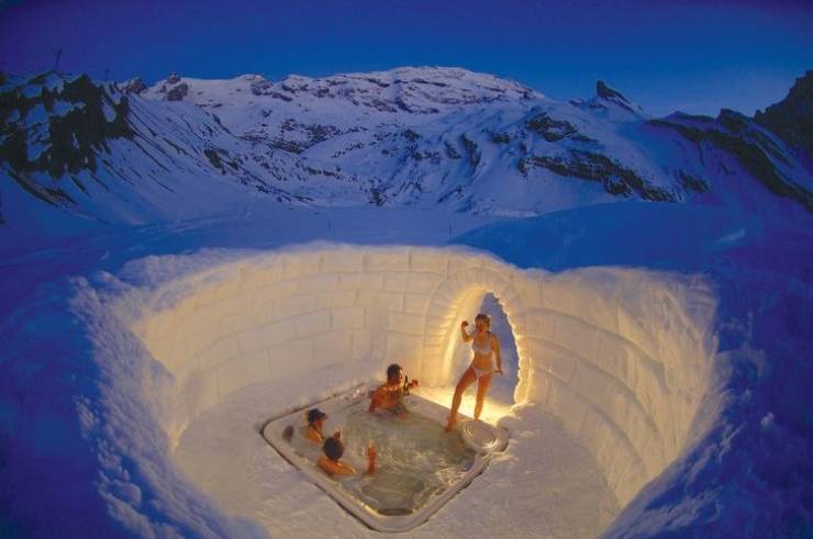 L’ Iglu-Dorf en Suisse est un groupe d’hôtels en igloo faits de briques de neige et de glace qui surplombent des montagnes enneigées. Iglu-Dorf a beaucoup de visiteurs même si les chambres ne sont pas permanentes – elles ne sont disponibles qu’en hiver.