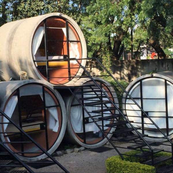 Le Tubohotel à Mexico est un hôtel confortable en plein air avec un ensemble de chambres faites de tuyaux en béton. Il semble très inhabituel mais offre tout de même du confort.
