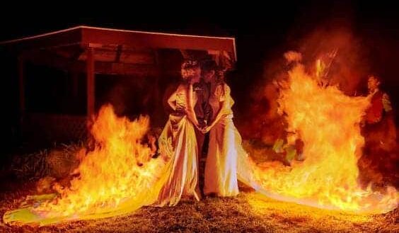 Ne vous inquiétez pas, car bien que ces images qui montrent des flammes engloutissant les robes soient dramatiques, les vêtements ont été spécialement aménagés pour que la traîne soit détachable. Ce couple homosexuel a donc parfaitement réussi son coup lors de son mariage qui a eu lieu le 13 octobre.