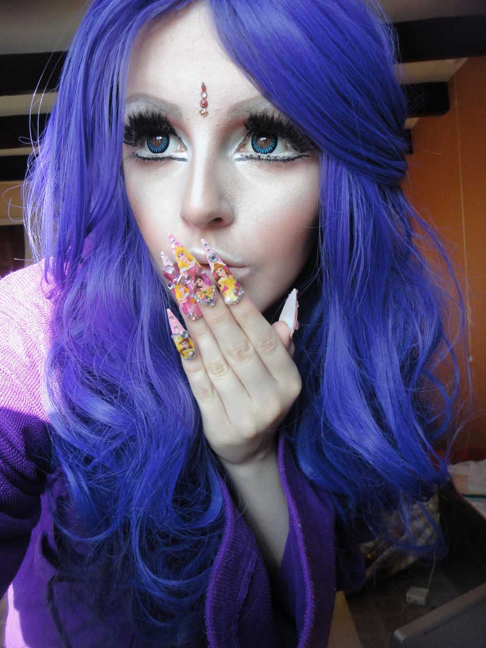 Pour cette autre Ukrainienne, elle passe 2 heures environ pour se maquiller le visage et 30 minutes par œil pour avoir ce résultat, un joli mix Barbie et autres poupées.