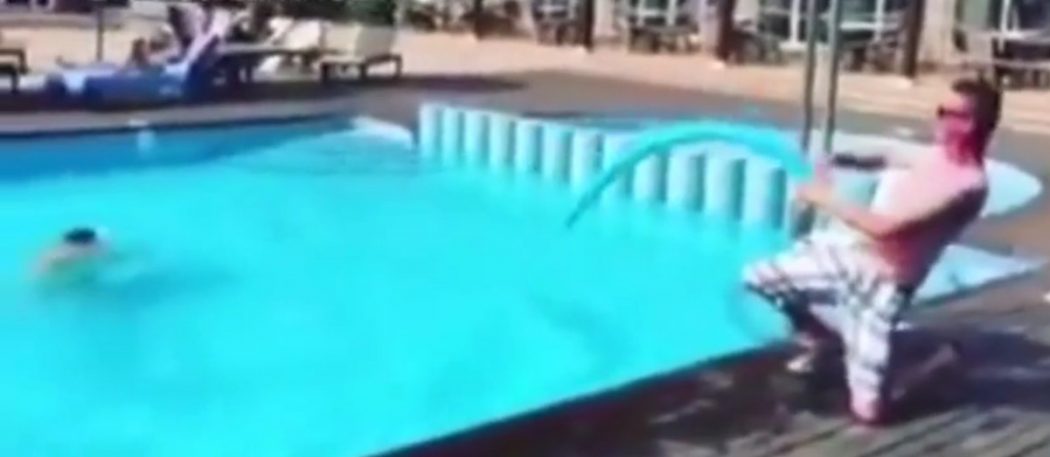 Ces gars ont eu l’ingénieuse idée de profiter d’une partie de pêche avec les moyens qu’ils ont à disposition. Ils ont ainsi fait une mise en scène où le premier gars, qui se trouvait au bord de la piscine était le pêcheur. Il a utilisé la frite piscine à la place de la canne à pêche pour attraper le poisson, qui n’est autre que son ami qui flottait dans la piscine. Une fois capturée, il a refait tous les gestes pour ramener le poisson à la surface.