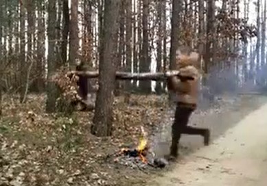 En effet, ils avaient un feu qui avait besoin de bois. Sauf que l’un des bois à disposition n’avait pas la bonne taille. Il fallait donc la couper. N’ayant pas une hache sous la main, nos Russes trouvent une idée pour la scinder en deux.