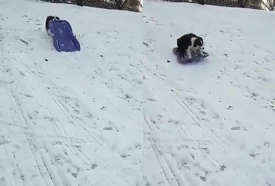 Un adorable intelligent chien a été capturé en vidéo par son propriétaire faisant du ski tout seul sans l’aide de personne et en utilisant seulement une planche.