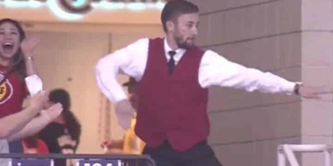 Il semblerait que ce ne soit pas seulement les foules qui peuvent fournir le divertissement ces jours-ci, c’est aussi le personnel des stades. Ce jeune homme qui travaille au Houston Toyota Center lors du match des Houston Rockets contre les les Portland Trailblazers a attiré l’attention de tout le monde pour toutes les bonnes raisons.