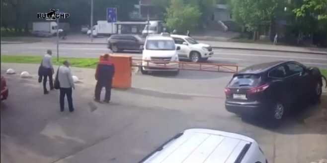 Cet homme a clairement eu une très mauvaise journée. Il a été filmé par une caméra de surveillance à la sortie d’un parking essayant de sortir avec sa voiture.