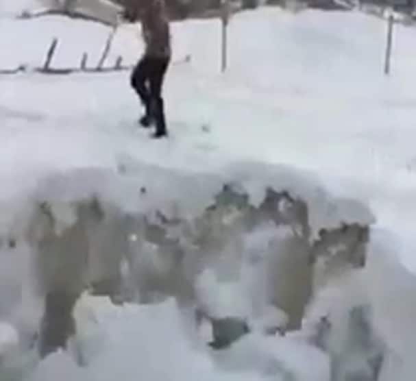Dans cette vidéo, c’est autre chose. Cet homme a jeté une boule de neige à côté d’une fosse pour s’assurer qu’il peut marcher sur cet allé. Il a eu raison de faire ce geste pour éviter de tomber dans la fosse. Il faut donc faire très attention pendant la saison de la neige.