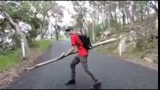 En lançant un bois assez large, cet homme se l’est pris dans la tête.
