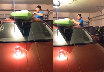 Cet homme voulait faire une belle surprise à sa femme en l’emmenant faire une virée en kayak. Il a alors attaché en toute sécurité le kayak sur le toit de la voiture. Et cela lui a pris certainement beaucoup de temps.
