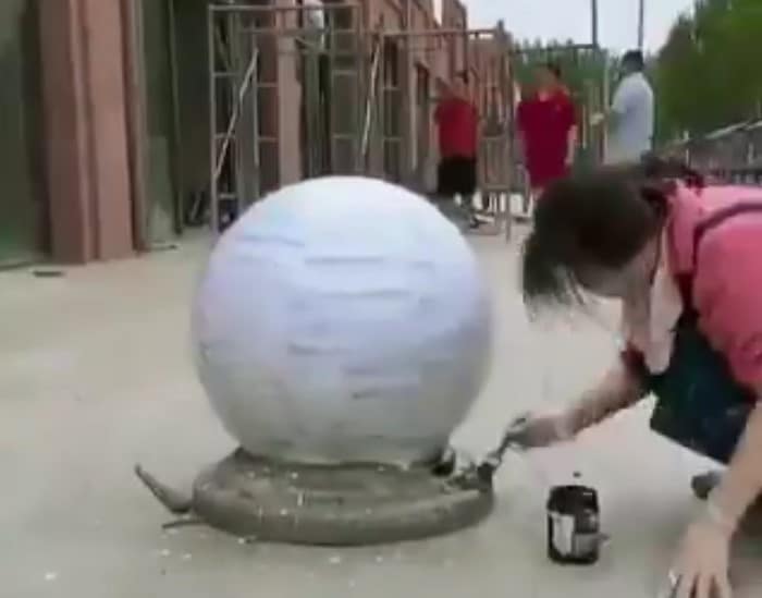 Cette artiste-peintre a la particularité de peindre sur une surface sphérique comme la pierre en boule de cette vidéo.