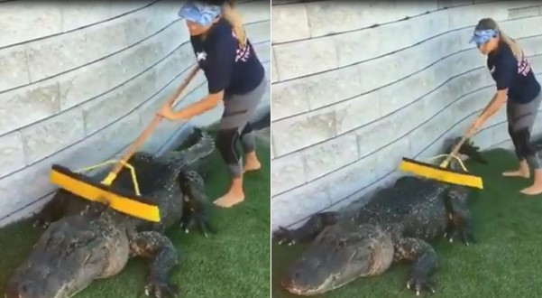 Combien d’entre nous oserait faire le même boulot que la femme dans cette vidéo ? En effet, elle nettoie le dos d’un alligator avec un balai. Regardez comment elle frotte le dos de l’animal qui semble plutôt apprécié.