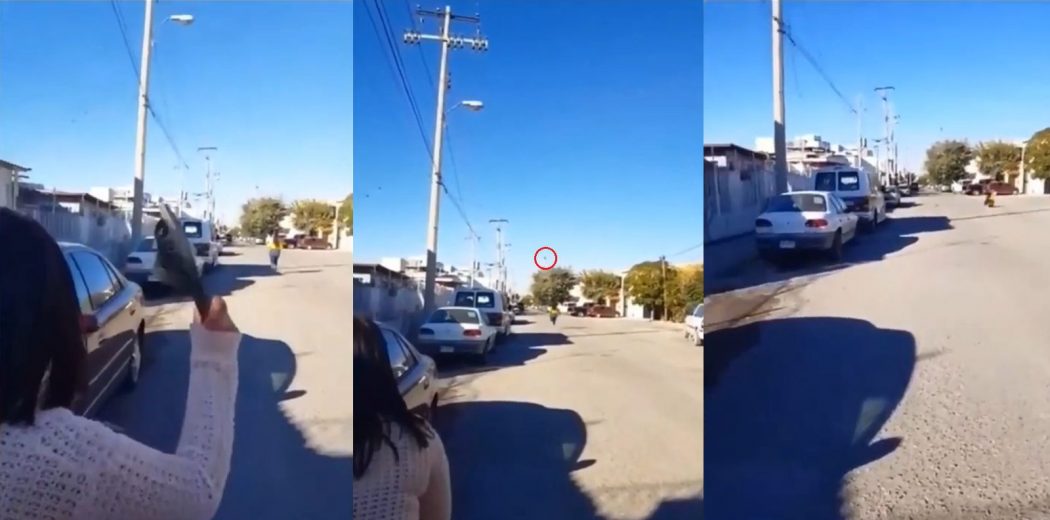 On voit la mère, soupçonnée d’être originaire du Mexique, crier et courir après sa fille adolescente avant de faire une pause pour retirer l’une de ses tongs et l’a ensuite jeté d’une distance énorme. Et la surprise, elle parvient à la frapper!