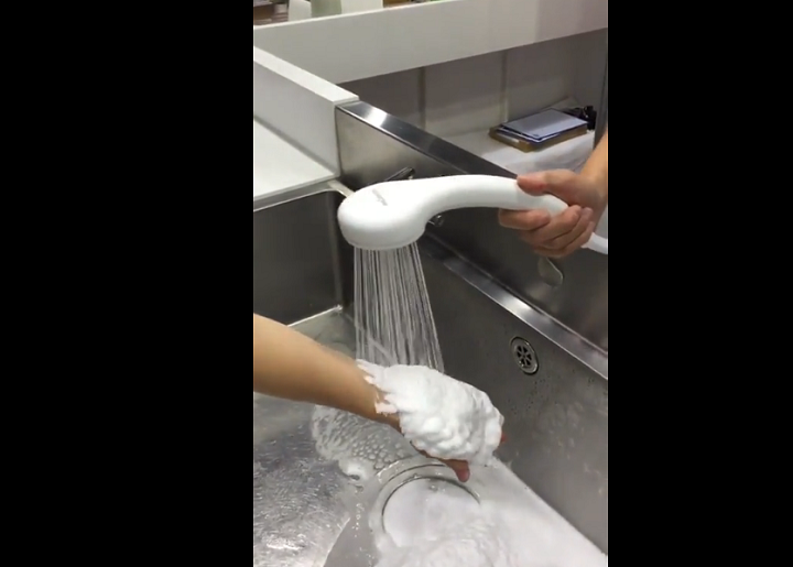 Les Japonais sont bien connus pour inventer des toilettes high-tech. Cette fois-ci, ils ont misé sur un pommeau de douche qui distribue à la fois du savon mousseux et de l’eau.