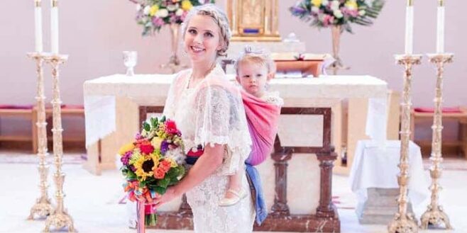 Pendant la cérémonie de son mariage, Dalton Mort a porté son bébé dans ses bras. Plus tard, elle a même porté sa fille de 2 ans sur son dos pour l’intégrer au mieux à leur union.