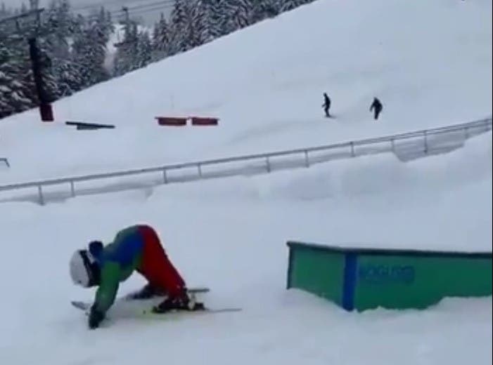 Cette petite fille ne s’est pas contentée de skier sur une piste droite. Elle voulait faire une démonstration en montant sur une sorte de conteneur. Un exploit plutôt impressionnant pour une petite fille de son âge.