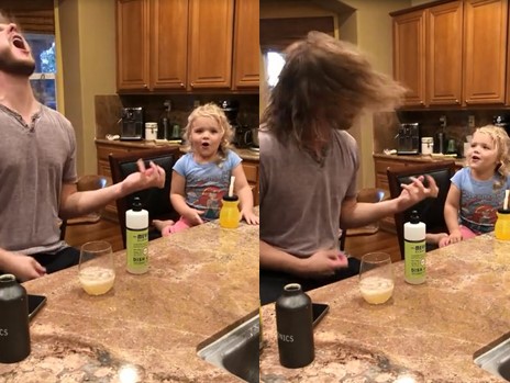En compagnie de son père qui fait semblant de jouer de la guitare tout en balançant la tête vigoureusement, la petite fille de cette vidéo chante au milieu de sa cuisine. Elle n’a que trois ans et elle pourrait bien avoir du talent.