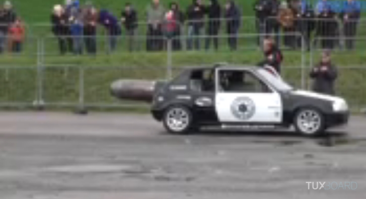 Une Peugeot 205 dotée d’un réacteur d’avion de chasse a mis plein la vue lors des rassemblements des amateurs du sport mécanique. Née d’une idée d’une équipe française, ce bolide a un moteur développant 2000 chevaux et enflamme les pistes, et ce, depuis une dizaine d’années.