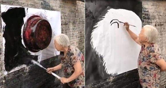 Le talent de cette dame assez âgée nous étonne. En effet, elle peint un magnifique tigre très réaliste sur la toile accrochée au mur. Dans cette vidéo, on voit bien qu’elle maîtrise son art avec les couleurs, les textures, les proportions, etc.