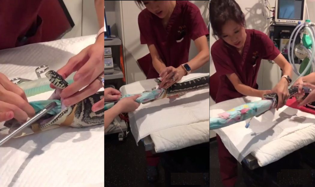 Une femme a emmené son grand serpent au vétérinaire pour un cas urgent. Ce dernier semble avoir avalé toute une serviette et elle s’est coincée dedans !