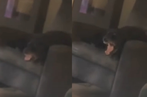 Assis tranquillement sur le canapé, ce chien émet d’un coup un bruit bizarre et drôle, sans parler des gestes. On croirait entendre un ours. Et pourtant ce n’est autre qu’un chien.
