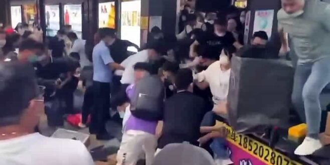 Des personnes tentent de s’échapper d’un magasin du marché en Chine après la découverte d’un cas COVID. Une quarantaine obligatoire de 14 jours s’ensuit. On peut les voir fuir à toute vitesse, ce qui crée une émeute importante.