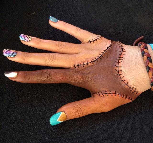 Vive la diversité. Un projet de maquillage qui montre une main avec différents tons de couleur de peau.