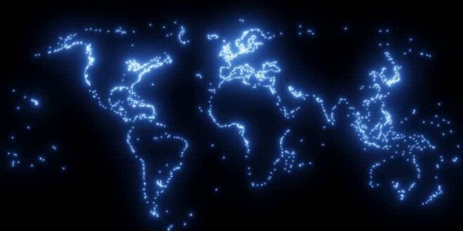 Plus c’est lumineux, plus il y a des connexions. Ainsi on peut voir que les points qui nous relient traversent les cinq continents du nord au sud et d’est en ouest malgré quelques zones enclavées.