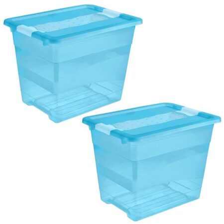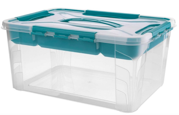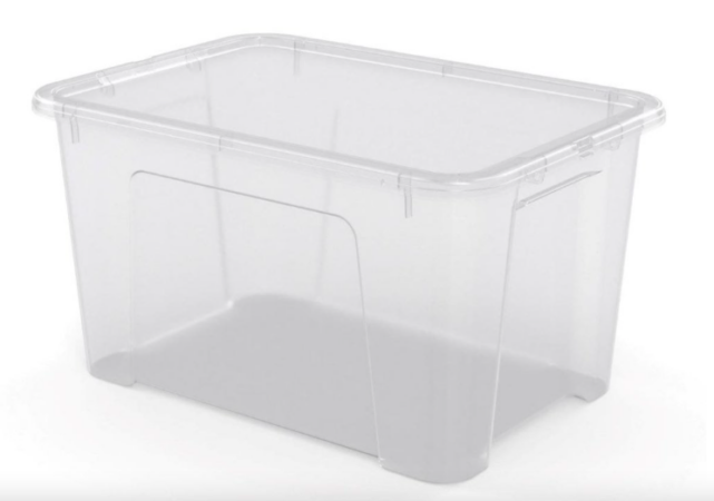 Les boîtes ont aussi un couvercle robuste et amovible, avec des fermetures coulissantes et des bords arrondis. Chacune d’elles mesure 39,5 cm de long, 29,5 cm de large, 30 cm de haut. Et a alors une capacité de 24 litres. Elle coûte 18,70 euros.