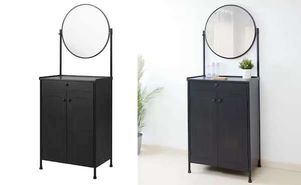 La marque propose une armoire multifonction qui sert de rangement, de miroir et d’objet déco. Celle-ci dispose de plusieurs tiroirs pour cacher tous vos petits objets. Elle a aussi un superbe miroir arrondi qui fait toute la différence.