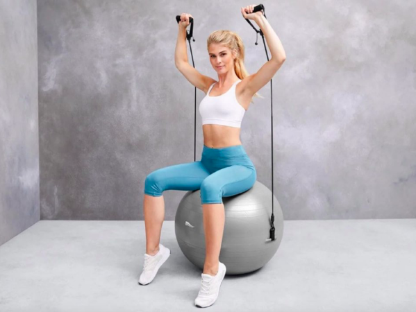 Le ballon dispose de deux sangles élastiques amovibles. Elles permettent d’effectuer certains types d’exercices avec plus de précision et de meilleurs résultats. Le produit Lidl a un diamètre de 65 cm et supporte un poids maximum de 120 kilos.