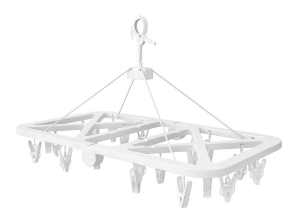 Découvrez cet étendoir rectangulaire doté de 24 pinces à linge. C’est un objet utile pour faire sécher tous vos sous-vêtements, serviettes, torchons de cuisine ou chaussettes !
