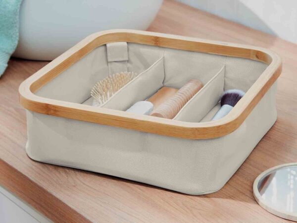 Vous pourrez le glisser dans les tiroirs de meubles de votre salle de bain. Ou bien l’exposer sur votre table de nuit dans votre chambre. Avec ses dimensions de 30 × 30 × 9 cm, cet organiseur peut accueillir jusqu’à 30 L de produits.