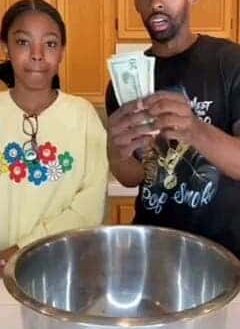 La fille de cet homme va le surprendre. Ce dernier lui tend un défi pour récupérer l’argent, placé sous le bol, sans le toucher. Comment va t-elle s’y prendre ? Vous risquez d’être surpris par la manière !
