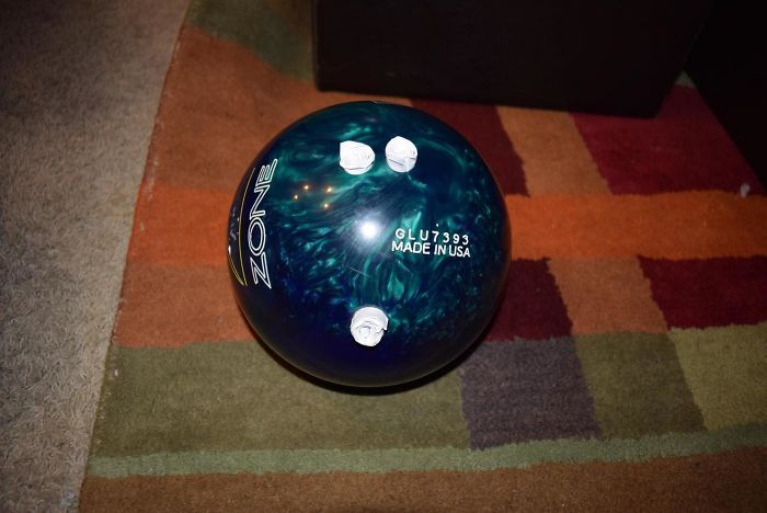 Ayant trouvé une boule de bowling bon marché, sa femme lui a alors suggéré de le rembourrer de petit papier. L’ensemble constituera la partie centrale du cadeau.