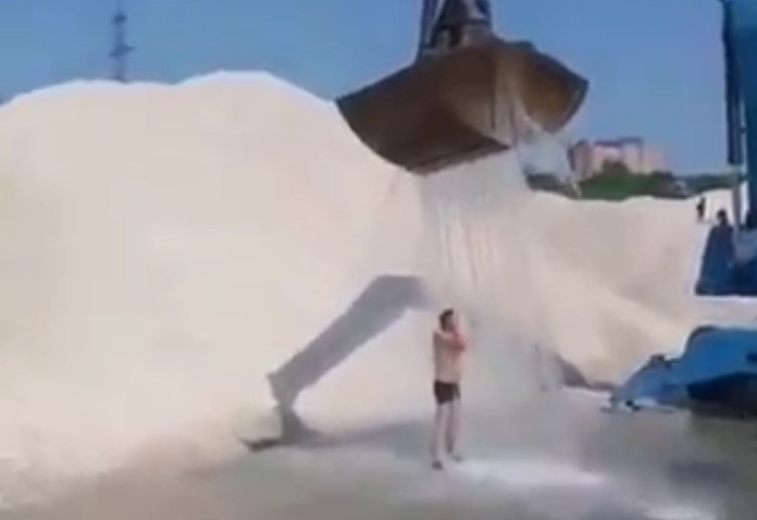 Dans cette vidéo, vous allez voir un homme qui utilise les pinces de son engin d’une façon originale. En effet, il a pris de l’eau avec, puis il s’en est servi pour prendre une douche bien fraîche. Un plaisir simple qu’il a partagé sur ces images.
