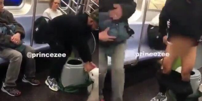 Un homme était assis à sa place dans un métro aux Etats-Unis quand soudain, il prend son sac et fait sortir une toilette portable.
