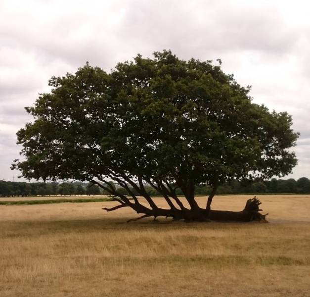 Malgré le fait qu’il soit tombé, cet arbre n’a jamais abandonné et a continué de pousser.