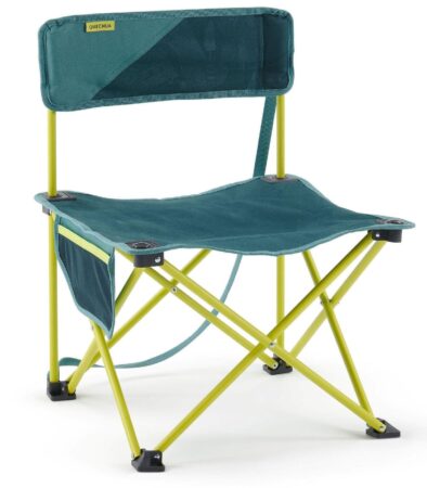 Decathlon a aussi mis en vente sa chaise de camping pliante basse Quechua MH100. Sous la même marque et avec un système de pliage également, vous trouverez ce modèle bas, avec une hauteur d’assise de 25 cm.